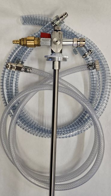 Zmiešavací ventil T-MIX-11-B INOX slúži na miešanie vodou riediteľných koncentrátov v plynule nastaviteľných koncentráciách do 20%. Zariadenie je určené na priamu inštaláciu na štandardný oceľový sud do otvoru so závitmi G2“ tiež G¾“. Teleskopické sacie potrubie zaručuje použitie na rôzne veľkosti sudov. Zmiešavací ventil je vybavený rýchlo spojkami, ktoré umožňujú rýchlu a pohodlnú výmenu sudu čo ocení hlavne obsluha.