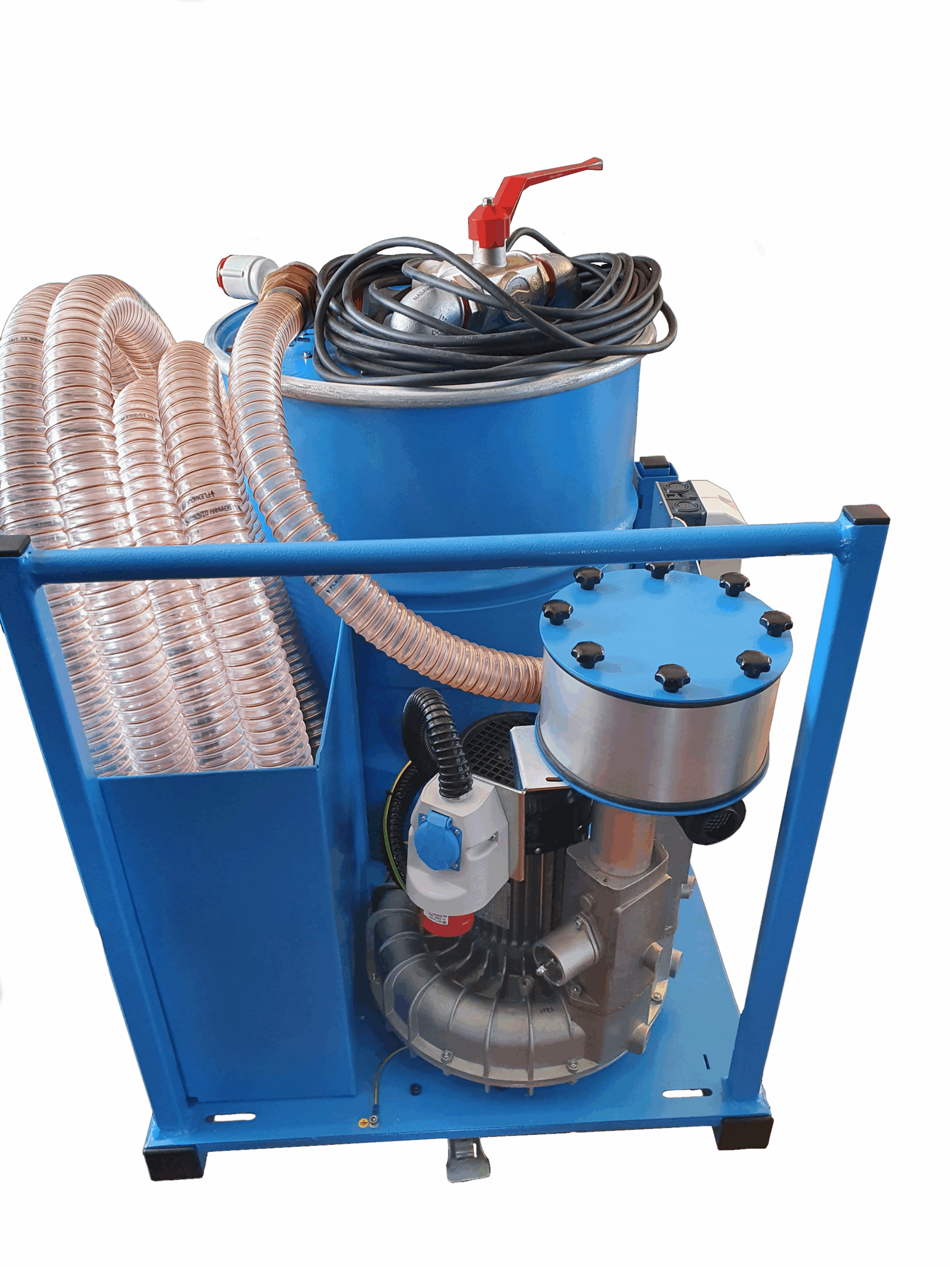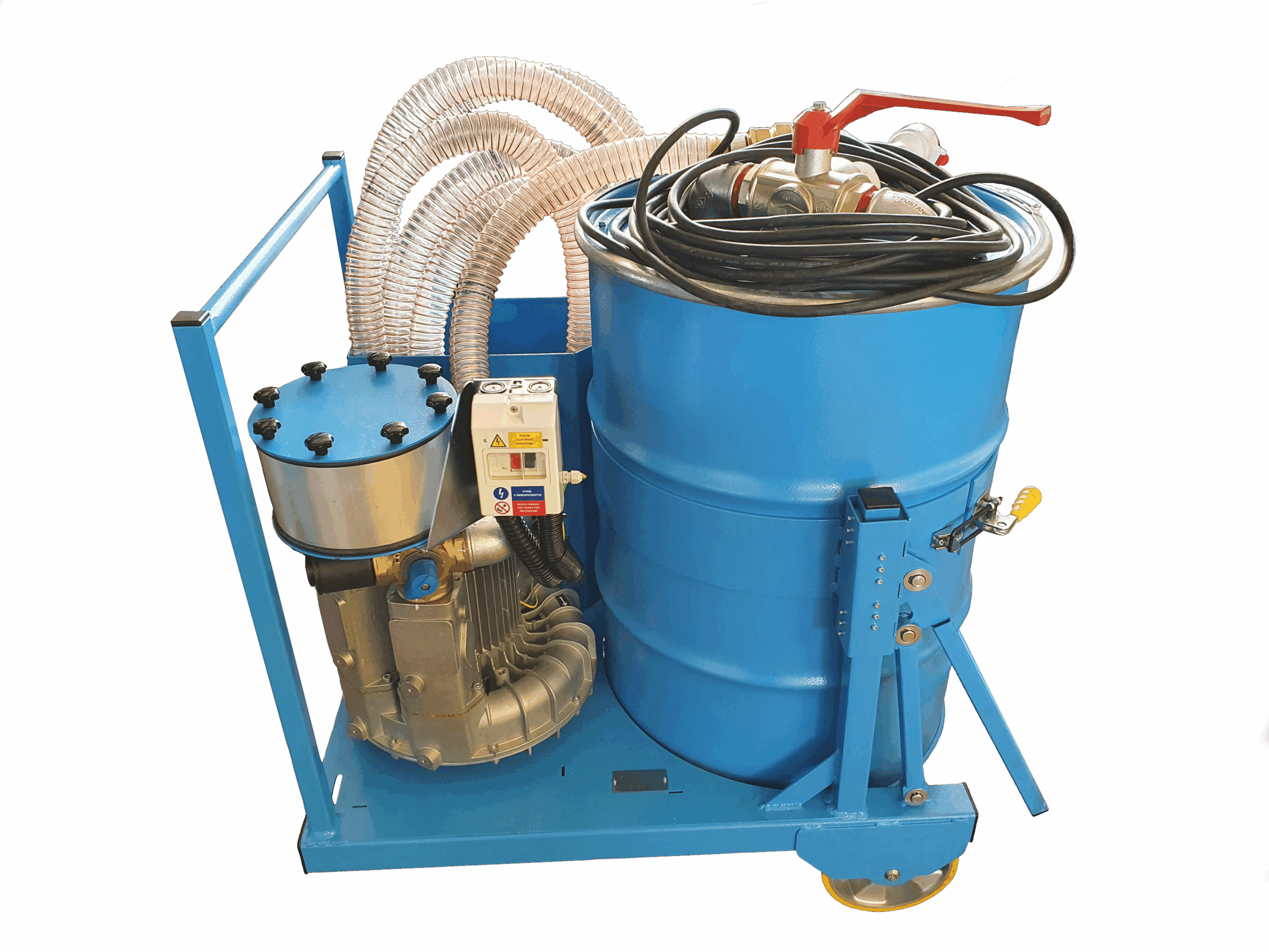 VYSA200 je riešený ako mobilné zariadenie na samonosnom ráme. Jednotlivé časti stroja sú vyrobené z materiálov odolných voči korózii, alebo povrchovo upravené tak, aby odolávali korózii(napr. farbené, zinkované, eloxované, atď.). Stroj pozostáva z oceľového rámu s podvozkom. Na ráme je umiestnené jednostupňové dúchadlo s bočným kanálom, nádoba na príslušenstvo a zdvíhací mechanizmus zbernej nádrže. Zberná nádrž je pripevnená k stroju pomocou obruče s uzamykacou pákovou svorkou, ktorou sa dá zaistiť/odistiť pre prípadné čistenie alebo výmenu sudu. V nádrži je umiestnený kôš pre zachytávanie hrubých nečistôt. Nádrž je tak isto vybavená plavákom na uzatváranie sania v prípade naplnenia nádrže. Jak sanie tak aj vývod sú vybavené hrubým filtrom pre zabránenie vniku hrubých nečistôt do dúchadla.